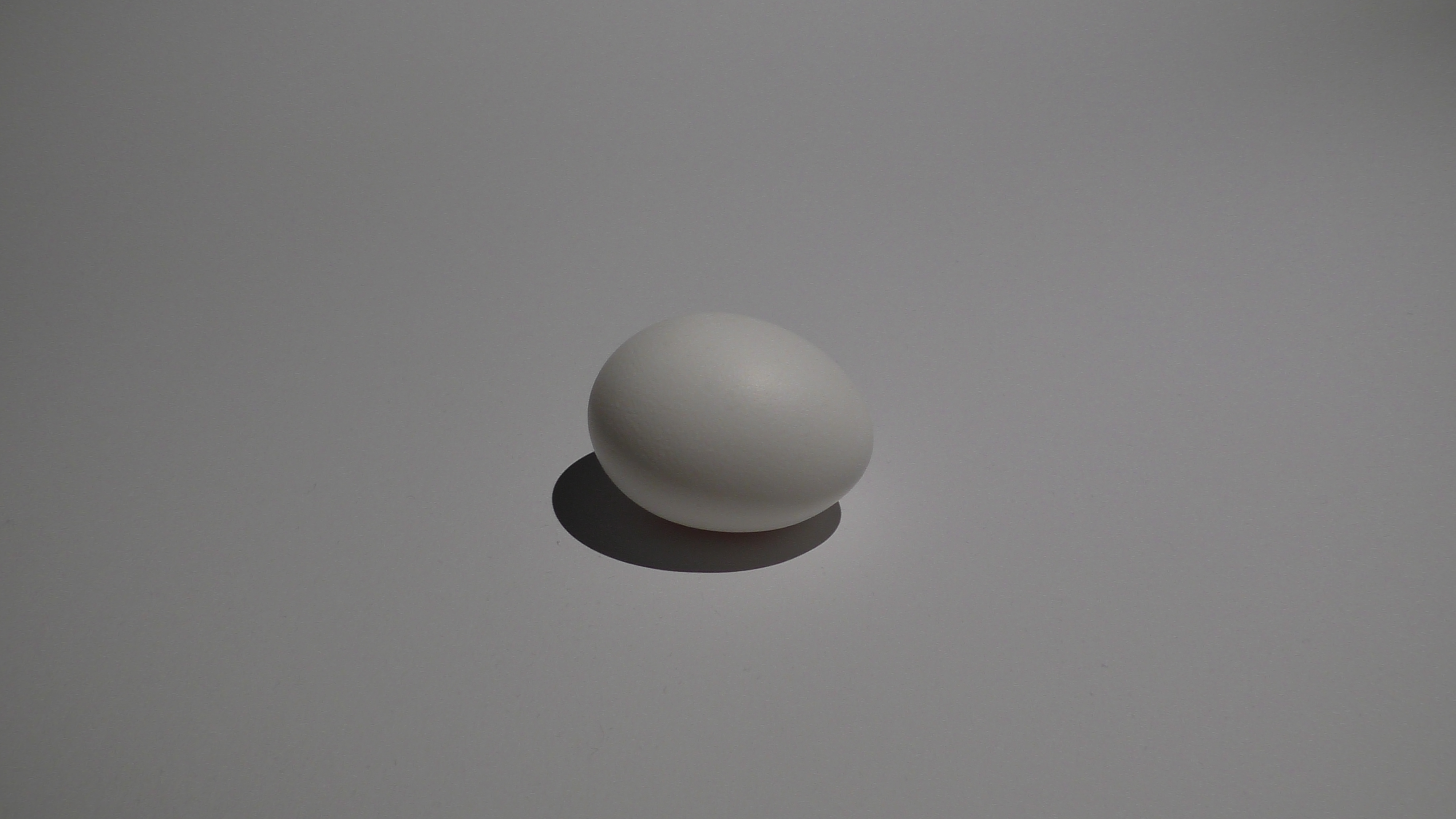 Im letzten Bild (unten) habe ich das Ei im rechten Drittel des Bildes platziert. Ich habe mich dafür entschieden um dem Ei etwas Raum zu geben, aber auch auch um davon abzulenken, dass es ein Ei ist. Ich fand hier die spherenartige Gestalt des Eies interessant und, dass es, aus diesem Winkel betrachtet, mehr wie eine Kugel als ein Ei wirkt.